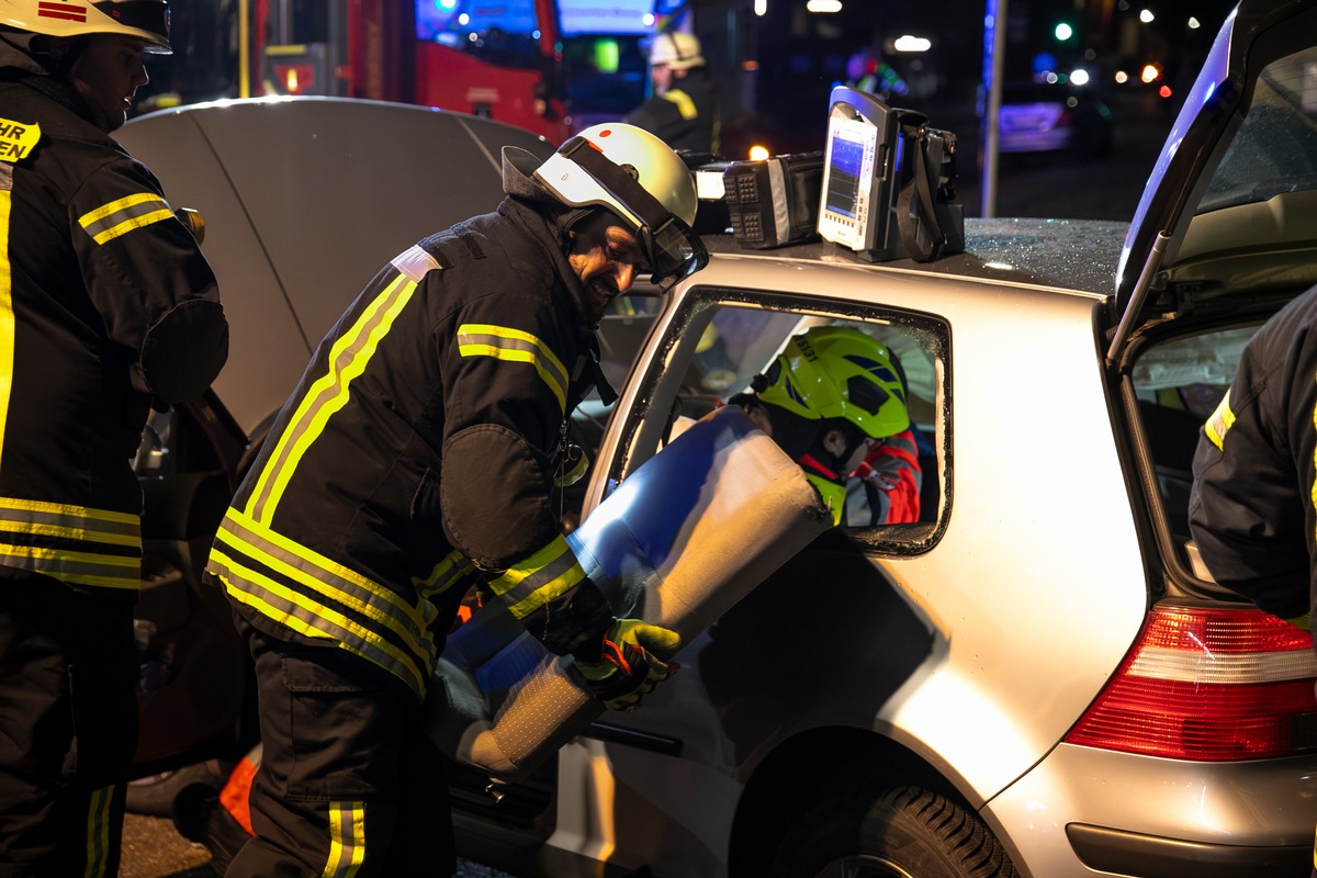 Eine schwer verletzte Frau musste die Freiwillige Feuerwehr Neunkirchen nach einem Verkehrsunfall auf einer Hauptverkehrskreuzung in der Neunkircher Innenstadt am frühen Montagmorgen, 15. Dezember aus einem Autowrack retten. Auf der Kreuzung Gustav-Regler-Straße mit der Linden- und der Peter-Neuber-Allee waren gegen 6:15 Uhr zwei Autos miteinander kollidiert. Zwei weitere Frauen zogen sich bei dem Unfall leichte Verletzungen zu.
