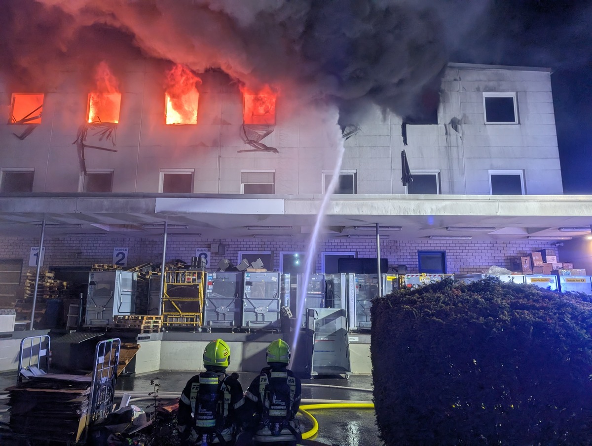 Der Brand konnte am Dienstagvormittag gelöscht werden. Die Nachlöscharbeiten dauern jedoch noch mehrere Stunden an. Dabei werden verbliebene Glutnester systematisch abgelöscht und der gesamte Bereich mit Wärmebildkameras kontrolliert. Entgegen anderslautender Berichte ist das Dach des Gebäudes nicht eingestürzt.
