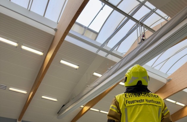 FW-OLL: Regenwasser dringt durch beschädigte Dachluke - Feuerwehr verhindert größeren Schaden an Sporthalle