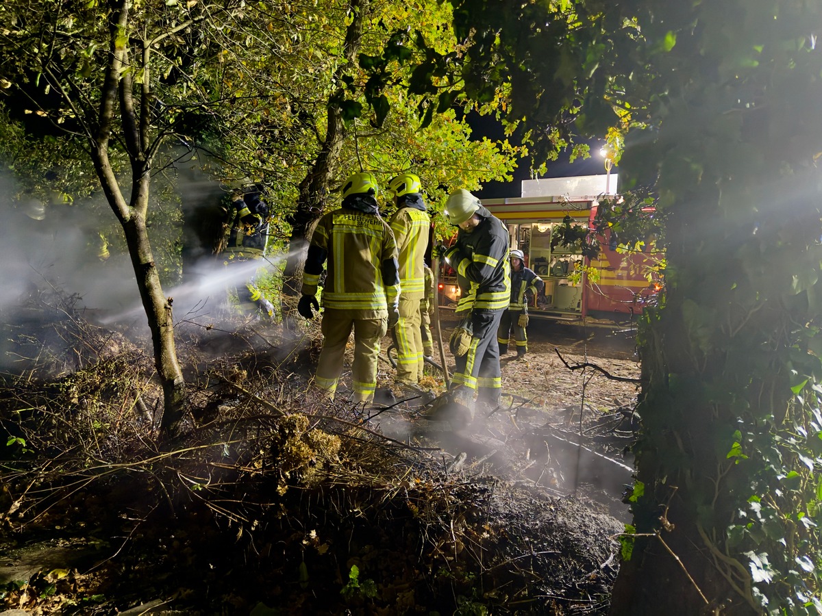 Beim Eintreffen der Feuerwehr hatte sich das Feuer bereits auf eine Länge von rund 20 Metern ausgebreitet. Da sich der Brand unter Bäumen und in unmittelbarer Nähe eines Holzschuppens befand, bestand die Gefahr, dass sich die Flammen weiter ausbreiten. Durch das schnelle Eingreifen der Einsatzkräfte konnte dies jedoch verhindert werden.