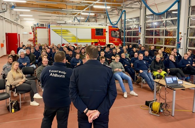 Am Dienstag, den 11. November um 19:30 Uhr hatte der Gemeindesicherheitsbeauftragte der Feuerwehr, Dominik Wefeler, alle Kameradinnen und Kameraden der vier Ortswehren zur Gemeindesicherheitsunterweisung eingeladen. Im Ahlhorner Gerätehaus begrüßte er die zahlreichen Anwesenden und erklärte den Fokus der diesjährigen Veranstaltung: