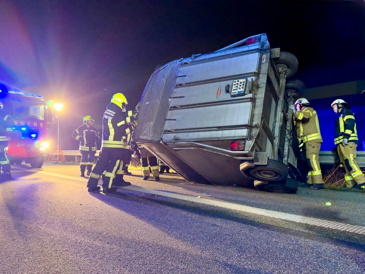 Am Mittwochabend um 20:51 Uhr wurde die Feuerwehr mit einem Großaufgebot zu einem verunfallten Pferdetransporter mit Pferdeanhänger auf die Autobahn 28 alarmiert. Das Gespann war in Fahrtrichtung Oldenburg unterwegs und kurz vor der Abfahrt Kirchhatten auf die Seite gestürzt. Ersten Meldungen zufolge sollten neben dem Fahrer auch zwei Pferde in Fahrzeug und Anhänger eingeschlossen sein.
