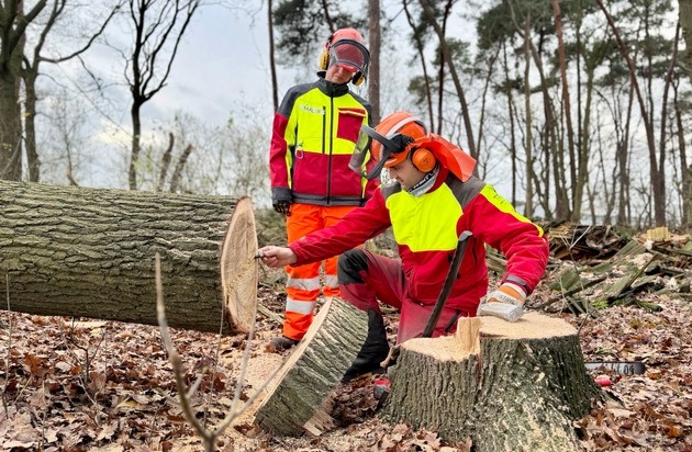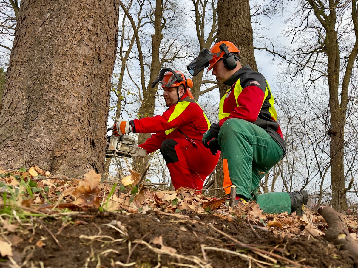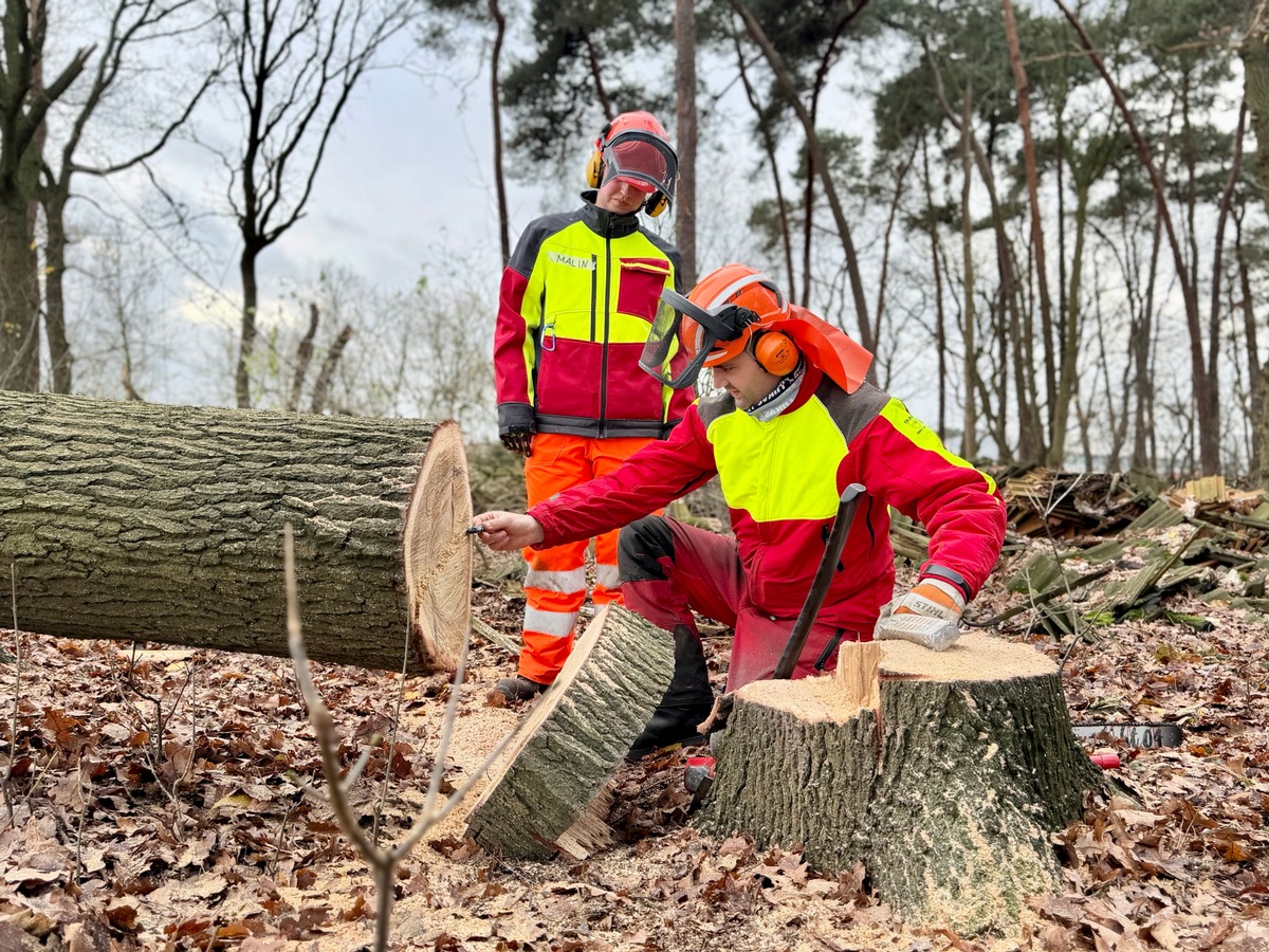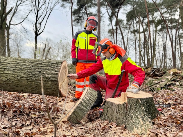 Der theoretische Teil umfasste unter anderem die Unfallverhütung, Gefährdungsbeurteilungen, Gerätekunde sowie geltende Sicherheitsbestimmungen. In der Praxis wurden dann u.a. die Fällung von Bäumen entsprechender Dicke, das kontrollierte Zufallbringen gefährdeter Bäume sowie das windenunterstützte Sägen intensiv trainiert.
