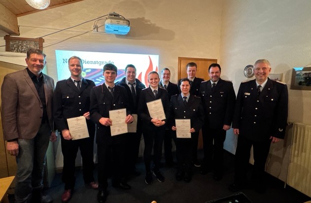 Im Anschluss erhielten die übrigen anwesenden Feuerwehrangehörigen aufgrund der geänderten Feuerwehrverordnung ihre neuen Dienstgrade.