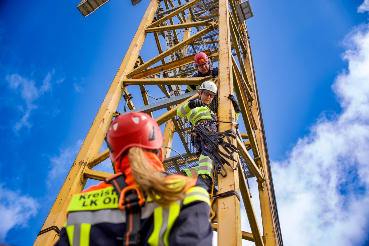 Ausbilderin Katharina Warmuth betonte, dass für die Teilnahme an der Fortbildung neben einer guten körperlichen Fitness auch eine entsprechende Höhentauglichkeit erforderlich ist: "Die Einsatzkräfte bewegen sich teilweise in großen Höhen, das erfordert sowohl körperliche als auch mentale Voraussetzungen."