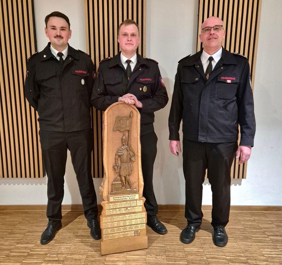 Siggi Wrede zum Musikzugführer (Feuerwehr Spielmannszug Hünningen) Sascha Robbert stellv. Musikzugführer (Feuerwehr Spielmannszug Hünningen) Der "Atemschutzpokal" wurde vom stellv. Leiter der Feuerwehr, Thomas Meier, an die Löschgruppe Hünningen überreicht.