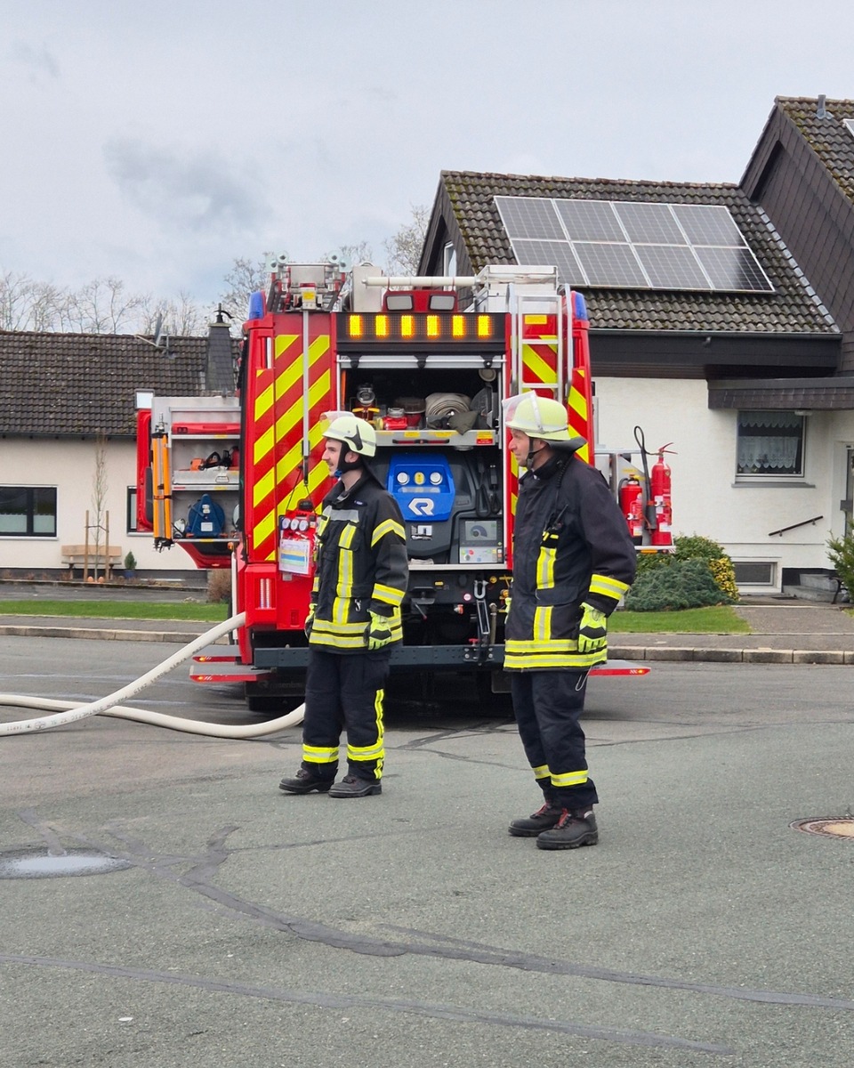 Am 11.03.2026 wurde der Löschzug Bremen der Feuerwehr Ense um 10:10 Uhr mit dem Einsatzstichwort "brennt Ruß im Schornstein" auf den Rauschenberg in Ense-Bremen alarmiert.