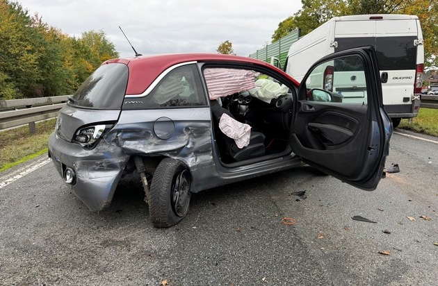 (sg) Paderborn, 09.10.2025 - Gegen 16:59 Uhr wurde die Feuerwehr Paderborn zu einem Verkehrsunfall auf der Bundesstraße 64 alarmiert. Ein Kleintransporter war aus bislang ungeklärter Ursache auf einen vorausfahrenden PKW aufgefahren. Durch die Wucht des Aufpralls wurde der PKW gegen die Fahrbahnbegrenzungen geschleudert.