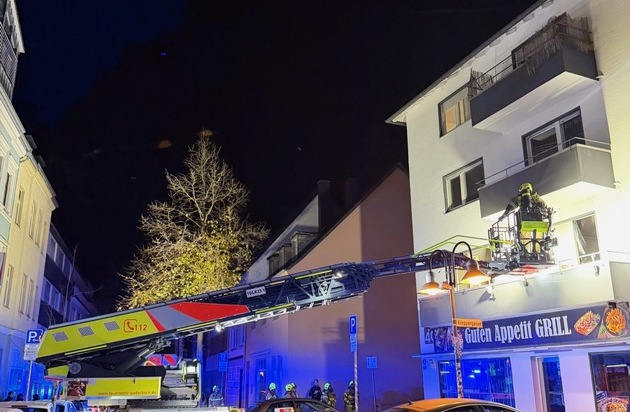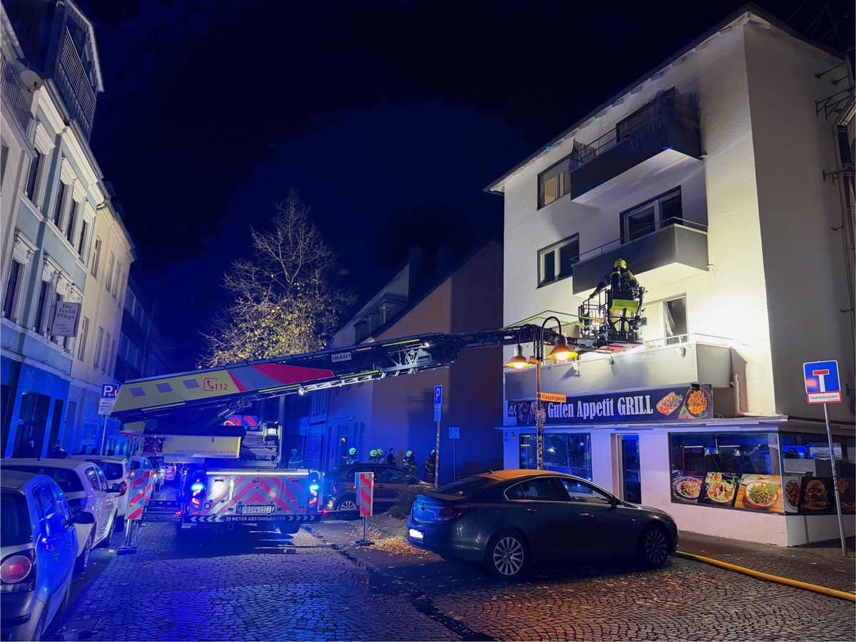 Beim Eintreffen der ersten Einsatzkräfte konnte die starke Rauchentwicklung aus einer Wohnung im ersten Obergeschoss lokalisiert werden. Zwei Personen befanden sich zu diesem Zeitpunkt auf einem Balkon und waren durch den Rauch bedroht. Nach ihren Angaben sollten sich noch zwei weitere Personen in der Brandwohnung aufhalten.