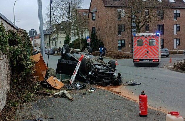 Ein schwarzer Nissan Qashqai hat sich aus unbekannter Ursache überschlagen. Der 85-jährige Fahrer fuhr aus Richtung Detmolder Straße erst rechts gegen den Bordstein, bevor er sich dann auf dem linken Gehweg überschlug und vor einem Baustromkasten zum Liegen kam. Dieser wurde ebenfalls beschädigt.