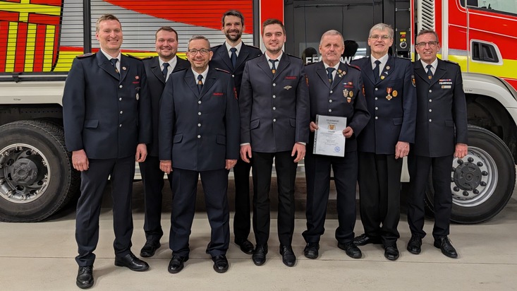 Mohammed Khatib wurde zum Feuerwehrmann - Anwärter Linus Müller zum Feuerwehrmann Bernd Vogt zum Hauptfeuerwehrmann Jonas Schulte zum Unterbrandmeister, sowie Christian Hampe zum Hauptbrandmeister befördert.