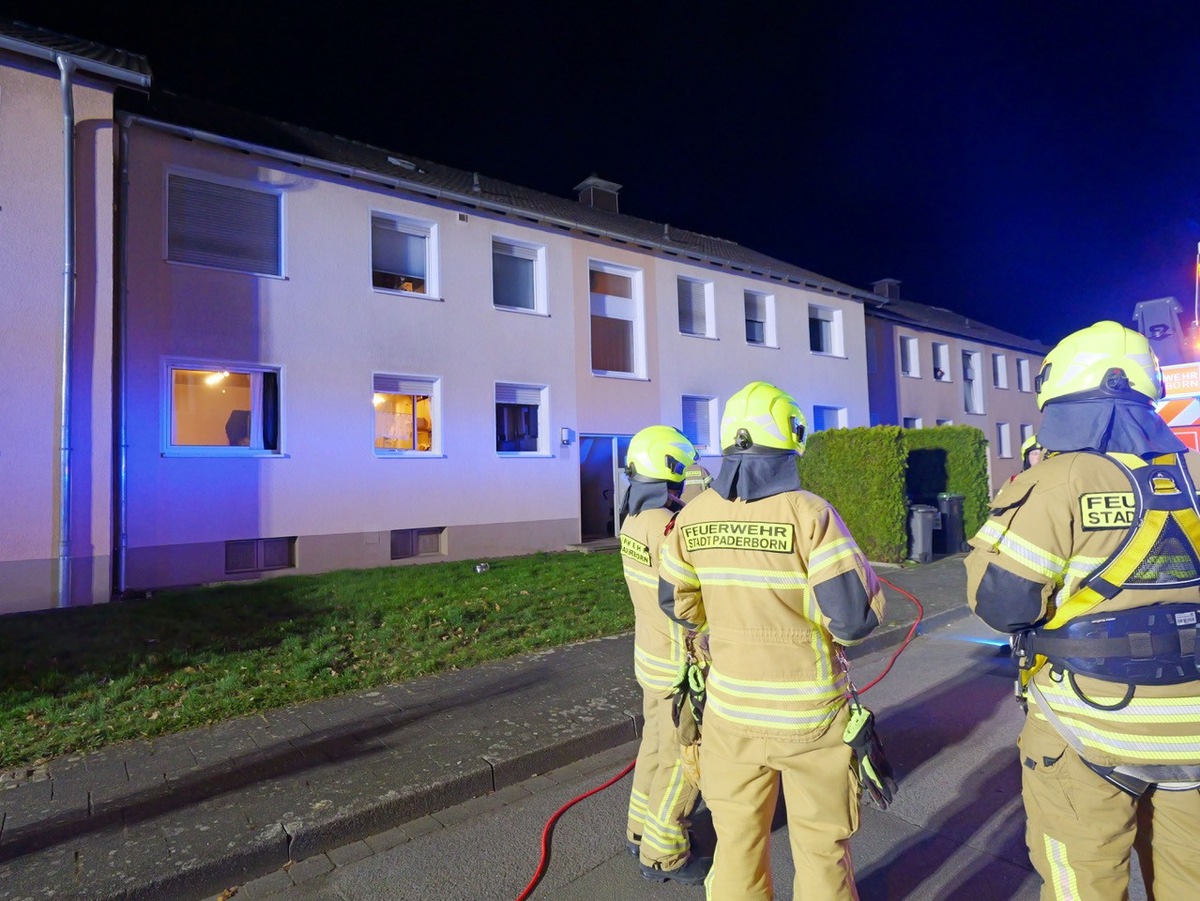 (sg) Am Montag, den 02.03.2026, wurde die Feuerwehr Paderborn um 20:41 Uhr zu einem gemeldetem Zimmerbrand mit Menschenleben in Gefahr in einem Mehrfamilienhaus in der Gneisenaustraße in den Paderborner Ortsteil Schloss Neuhaus alarmiert.