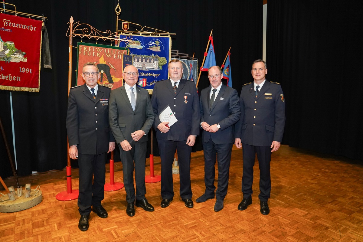 Des Weiteren konnten insgesamt 22 Ehrenurkunden mit Sonderauszeichnungen vom Verband der Feuerwehren in NRW für langjährige Mitgliedschaften verliehen werden. Für 50 Jahre Mitgliedschaft wurden Werner Agnesens, Franz-Josef Mathe, Martin Beineke, Norbert Bröckling, Bernd Hanselle, Christoph Hoischen, Josef Höschen, Wilhelm Huck, Reinhard Kurte, Alexander Lüke, Werner Möller, Günter Pöhler und Ulrich Waschkowski geehrt. Die Auszeichnung für 60 Jahre erhielten Hans-Joseph Bee, Hermann Hustadt, Helmut Keuper, Karl-Franz Menne, Albert Prior, Hubert Spier, Josef Wecker und Karl-Heinz Wecker. Für stolze 70 Jahre Mitgliedschaft wurde Ernst Wewer ausgezeichnet.