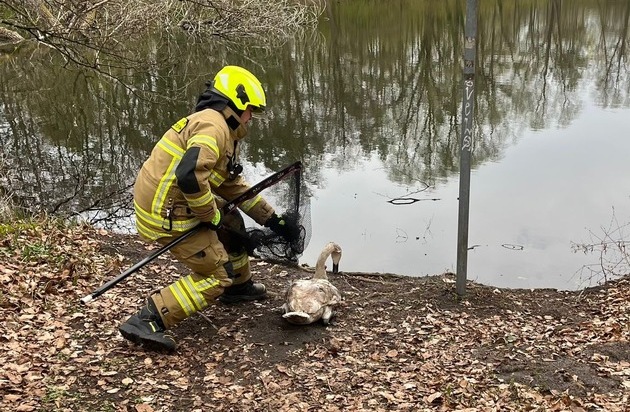 Ein engagierter Passant hatte bereits versucht den Schwan aus seiner misslichen Lage zu befreien - jedoch ohne Erfolg. Die Feuerwehr weist in diesem Zusammenhang ausdrücklich darauf hin: Das Betreten von Gleisanlagen ist lebensgefährlich und streng verboten.