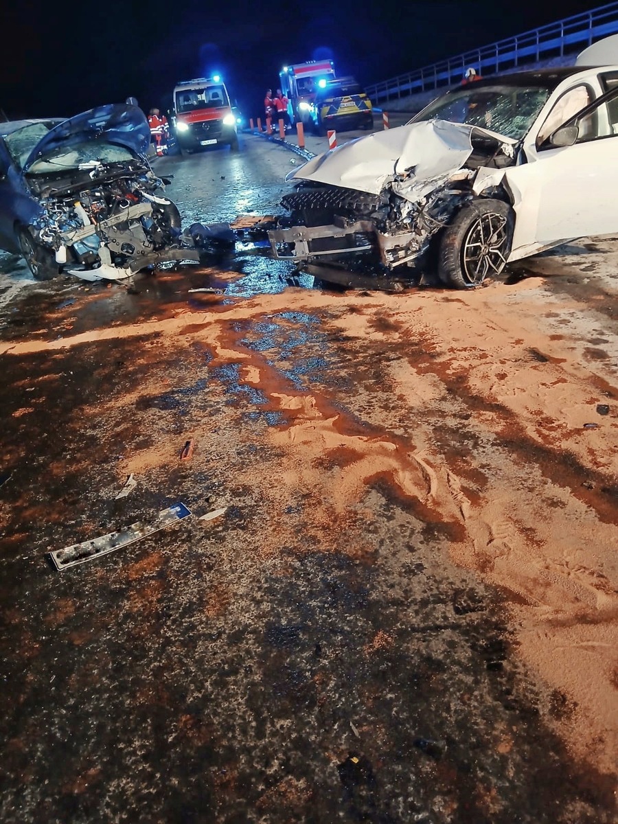 Vor Ort konnten zwei verunfallte PKWs festgestellt werden. In einem Fahrzeug war eine Person eingeschlossen. Die drei Insassen des zweiten PKWs konnten das Fahrzeug noch vor Eintreffen verlassen.
