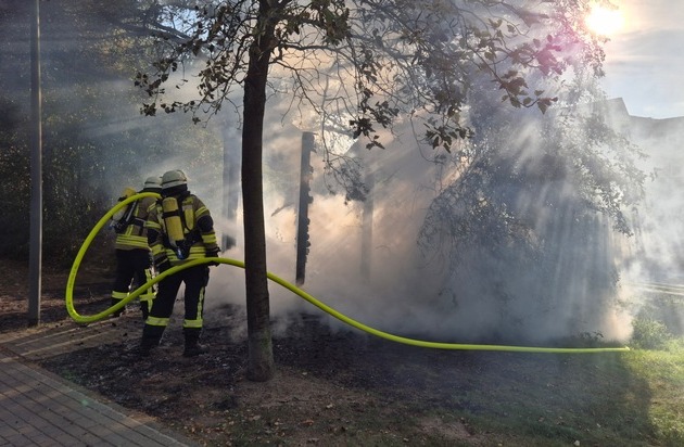 FW Südheide: Holzunterstand mit Dixi-Klo brennen in Hermannsburg