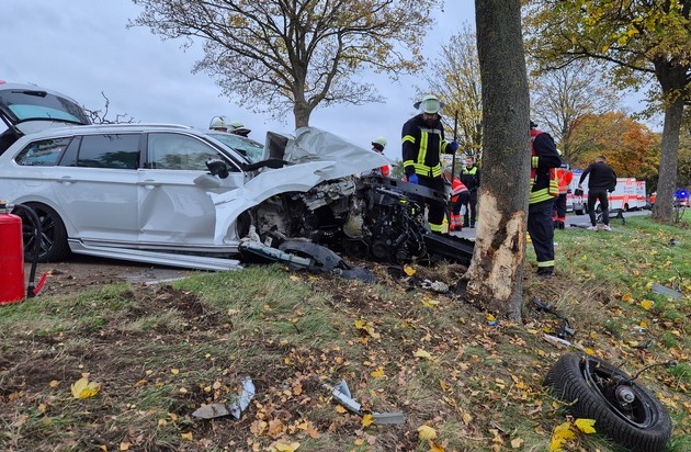 Am Samstagnachmittag ereignete sich auf der L240 zwischen Beckedorf und Huxahl erneut ein schwerer Verkehrsunfall nach einem missglückten Überholmanöver. Nach ersten Erkenntnissen der Polizei setzte der mit 2 Erwachsenen und zwei Kinder besetzte VW Passat zum Überholen mehrere Fahrzeuge an. Ein sich weiter vorne befindliches Fahrzeug setzte kurze Zeit später ebenfalls zum Überholen an. Um einen Zusammenstoß zu vermeiden kam der Passat nach rechts von der Fahrbahn ab und stieß mit hoher Geschwindigkeit gegen einen Baum. Glücklicherweise wurde niemand im Fahrzeug eingeklemmt. Die um 17:07 Uhr alarmierte FF Beckedorf sicherte die Unfallstelle ab, stellte den Brandschutz sicher, schaltete das Fahrzeug stromlos und streute auslaufende Betriebsstoffe ab. Ein Erwachsener sowie die zwei Kinder wurden ins AKH nach Celle transportiert. Ebenfalls zum Einsatz alarmiert wurden 4 RTW, der Notarzt, der Organisatorische Leiter des Rettungsdienstes und die Polizei. Nach ca. einer Stunde war der Einsatz für die Feuerwehr beendet.