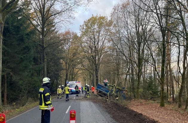 FW Südheide: LKW kommt von Straße ab und kippt um - Fahrer beleibt unverletzt