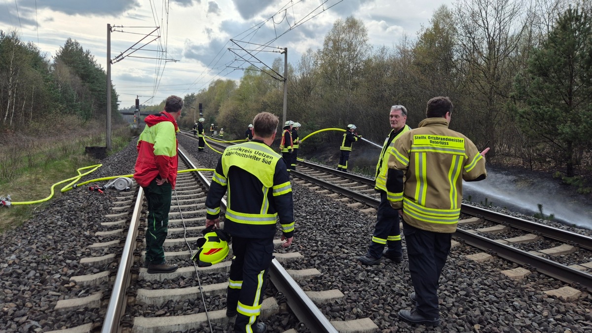 Am Freitagnachmittag wurde die Feuerwehr Unterlüß sowie 5 Wehren aus dem LK Uelzen an die Bahnstrecke zwischen Unterlüß und Suderburg alarmiert. Auf einer Länge von rund einem Kilometer brannte die Böschung westlich der Bahn in den Landkreisen Uelzen und Celle an insgesamt fünf Stellen. Im Einsatz befanden sich zahlreiche Einsatzkräfte, die gemeinsam die Ausbreitung der Brände verhinderten und Glutnester ablöschten. Aufgrund der Streckensperrung kam es zwischen Uelzen und Hannover zu erheblichen Einschränkungen im Bahnverkehr. Neben den Kräften der Feuerwehren machten sich auch der Notfallmanager, der zuständige Revierförster und die Bundespolizei ein Bild von der Lage. Gegen 18 Uhr konnten die Kräfte aus Unterlüß die Einsatzstelle verlassen.