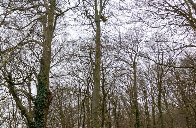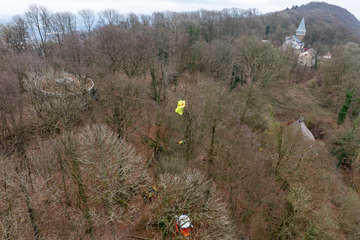 Porta Westfalica Barkhausen. Die Freiwillige Feuerwehr Porta Westfalica wurde am Mittwoch, 17.12.2025, gegen 12:57 Uhr zu einem abgestürzten Paragleiter im Wiehengebirge nahe der Wittekindsburg alarmiert. Der Gleitschirmpilot hing in etwa 20m Höhe in einer Buche fest. Die Höhenretter der Feuerwehr Espelkamp konnten die Person sichern und nahezu unverletzt retten.