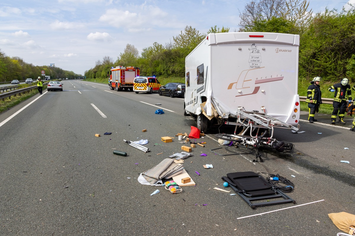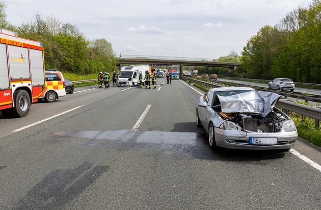 Die Einsatzstelle lag auf der A2 in Fahrtrichtung Dortmund zwischen der Autobahnbrücke Ellernstraße und der Abfahrt Vennebeck. Aus bislang unbekannter Ursache war es zwischen einem Wohnmobil und einem PKW Mercedes zu einer Kollision gekommen. Das Wohnmobil war in der Folge in die Leitplanken am rechten Fahrbahnrand eingeschlagen, es kam auf dem rechten und mittleren Fahrstreifen zum Halt. Der Mercedes stand einige Meter weiter auf dem linken Fahrstreifen. Bei Eintreffen war niemand eingeklemmt. Ersthelfer hatten die beiden Personen aus den Fahrzeugen befreit und versorgt. Der Rettungsdienst übernahm die weitere Versorgung und den Transport in Kliniken nach Minden und Herford. Die Feuerwehr sicherte die Einsatzstelle ab und nahm auslaufende Betriebsmittel mit Bindemitteln auf. Die Batterien der Unfallfahrzeuge wurden abgeklemmt. Die Einsatzstelle wurde gegen 13:30 Uhr der Polizei übergeben. Die Unfallermittlung dauert an, Autobahnmeisterei und Bergungsunternehmen waren auf der Anfahrt. Die A2 ist in Fahrtrichtung Dortmund vollgesperrt, es entstand ein erheblicher Rückstau.
