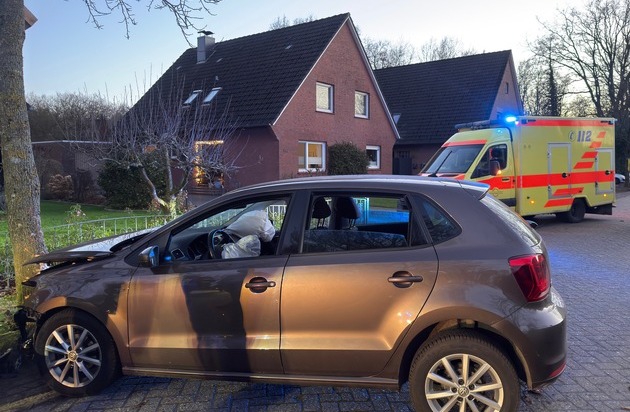 Ein Auto ist an Heiligabend im Südeweg gegen einen Baum geprallt. Polizei, Rettungsdienst und die Feuerwehr Sandhorst waren um 16:16 Uhr zur Unfallstelle in Höhe eines Wohngebiets alarmiert worden. Die Fahrerin des Wagens wurde durch den Zusammenstoß verletzt, konnte das Fahrzeug aber eigenständig verlassen. Sie wurde durch den Rettungsdienst versorgt und dem Krankenhaus zugeführt. Angerückte Feuerwehrkräfte streuten Bindemittel auf geringfügig ausgetretene Betriebsstoffe aus, räumten Trümmerteile zur Seite und schoben das Auto im Anschluss an den Straßenrand, wo es später durch ein Abschleppunternehmen geborgen werden konnte. Rund eine halbe Stunde waren die Einsatzkräfte vor Ort tätig.