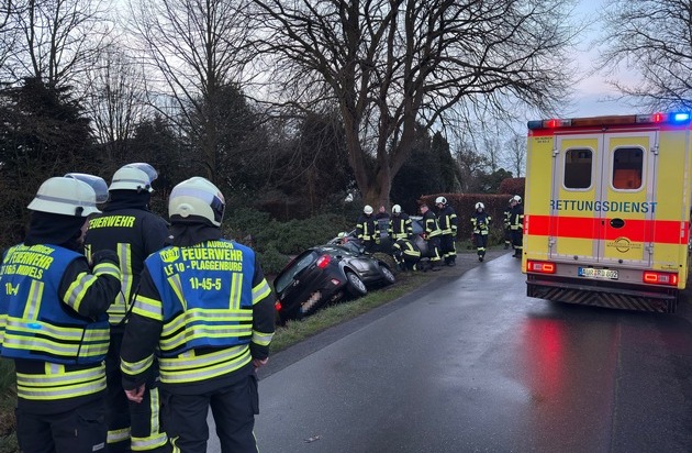 Von der Siedlerstraße ist ein Autofahrer am Samstagmorgen abgekommen und in einem Seitengraben gelandet. Der Mann blieb äußerlich unverletzt, war durch die ungünstige Position des Fahrzeugs allerdings zunächst nicht in der Lage, eigenständig aus dem Wagen auszusteigen. Infolge des abgesetzten Notrufs wurden die Feuerwehren Middels, Plaggenburg, Sandhorst und Wallinghausen zusammen mit dem Rettungsdienst um 05:48 Uhr zu der Unfallstelle alarmiert.