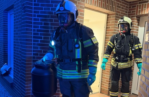 Auf Anforderung der Polizei waren die Feuerwehren Aurich und Sandhorst am Montagabend in der Wallstraße gefordert. Innerhalb eines dortigen Gebäudes wurde eine stark geruchsaussondernde Substanz vorgefunden, bei der es sich um Buttersäure handeln sollte. Die Einsatzkräfte gingen unter umluftunabhängigen Atemschutz in die Räumlichkeiten vor und entnahmen zunächst eine Stoffprobe, ehe die Überreste der Flüssigkeit zur fachgerechten Entsorgung in verschließbare Behälter umgelagert worden sind. Rund eine Stunde dauerte der Einsatz für die 25 Feuerwehrleute an.