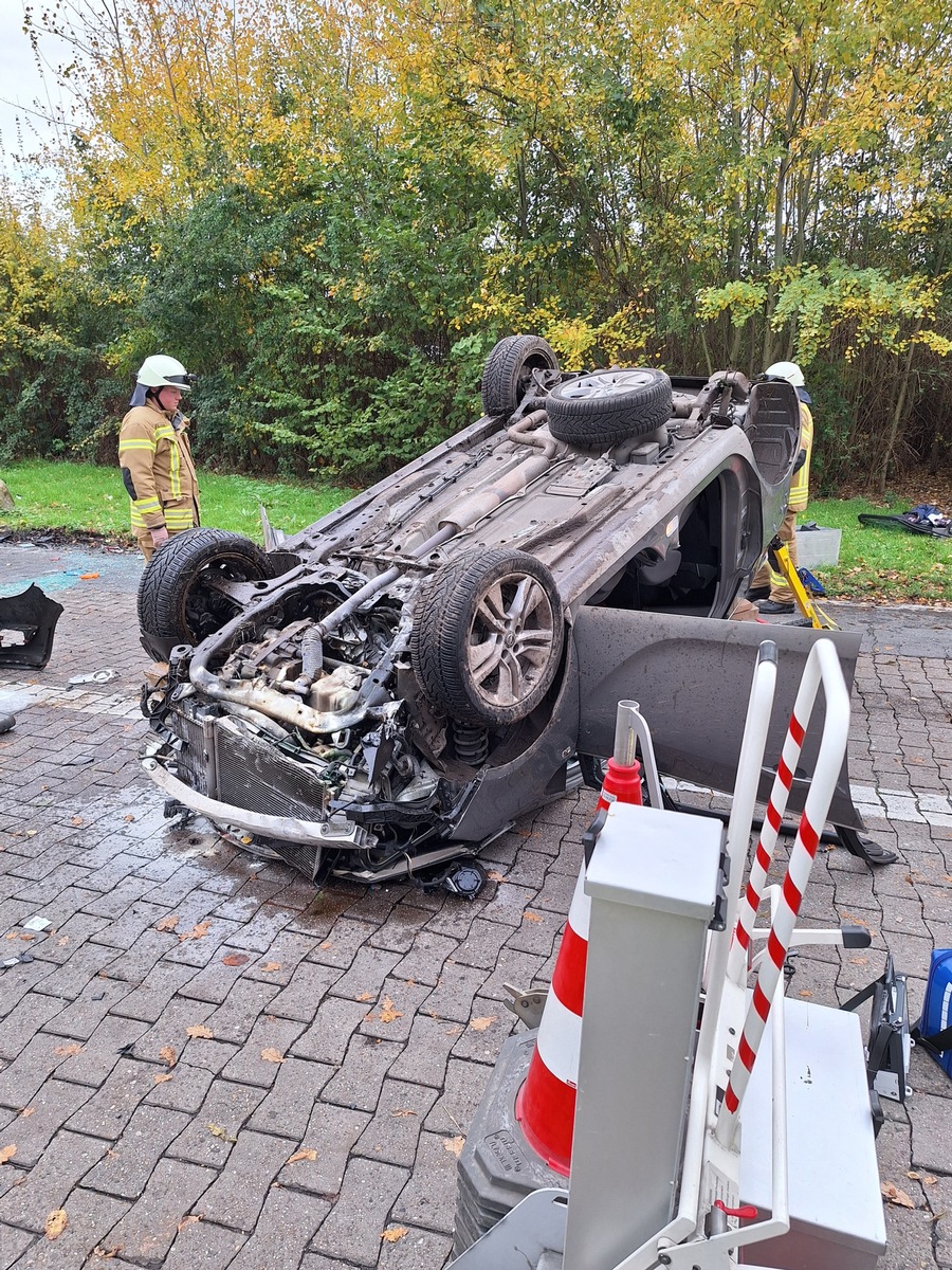 "Eine Person befand sich bei unserem Eintreffen bereits außerhalb des Fahrzeuges. Zur Rettung der zweiten Person musste zunächst das Fahrzeug stabilisiert und dann schweres, technisches Gerät eingesetzt" so Brinkhaus.