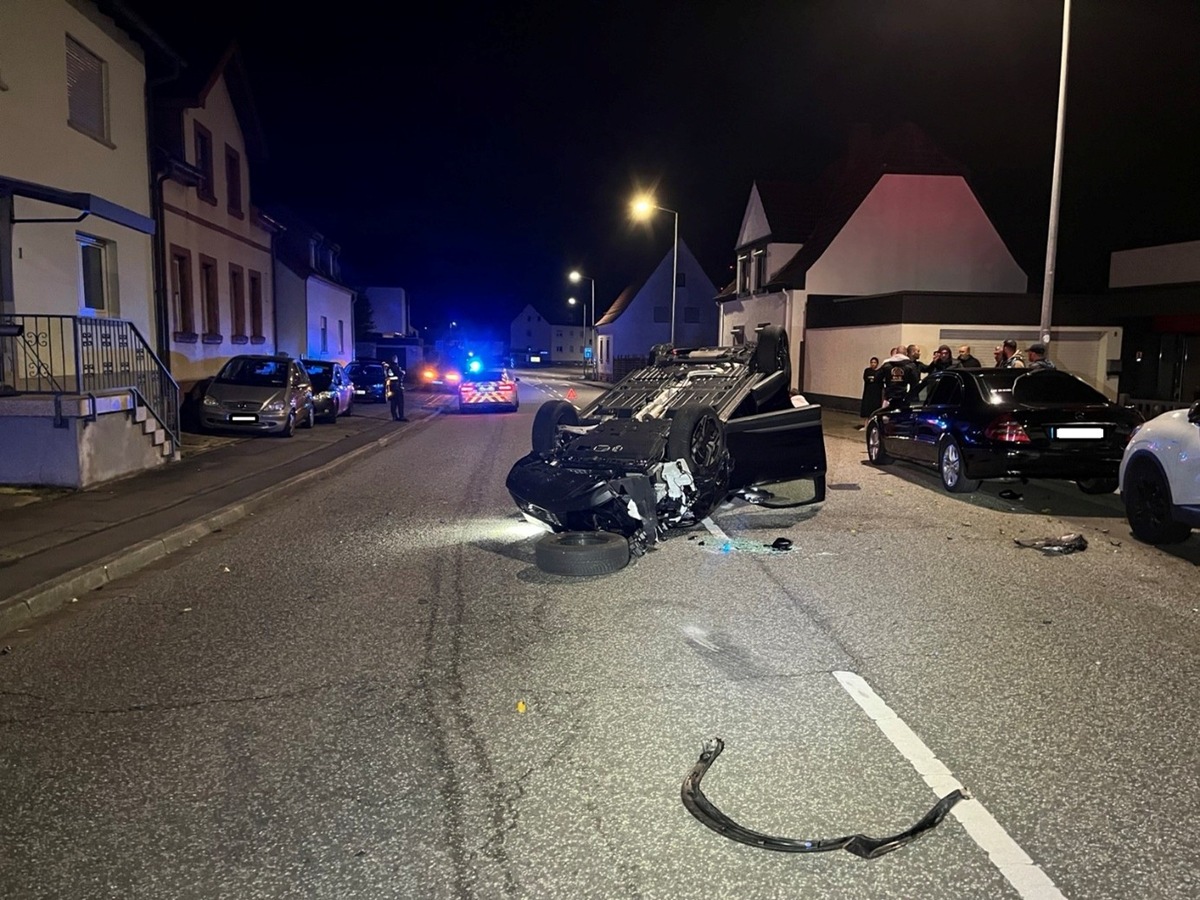 Am Freitagabend kam es in der Kaiserstraße in Bruchmühlbach-Miesau zu einem Verkehrsunfall mit einer verletzten Person. Der Fahrer eines schwarzen Peugeot fuhr mit seinem Fahrzeug aus Hauptstuhl kommend in Fahrtrichtung Homburg. Im Bereich des Ortseingangs Bruchmühlbach verlor er die Kontrolle über sein Fahrzeug und stieß mit einem am rechten Fahrbahnrand geparkten Toyota zusammen. Die Wucht des Aufpralls war so stark, dass der Toyota auf ein weiteres davor geparktes Fahrzeug geschoben wurde. Der Wagen des Unfallverursachers überschlug sich und kam auf dem Fahrzeugdach zum Erliegen.