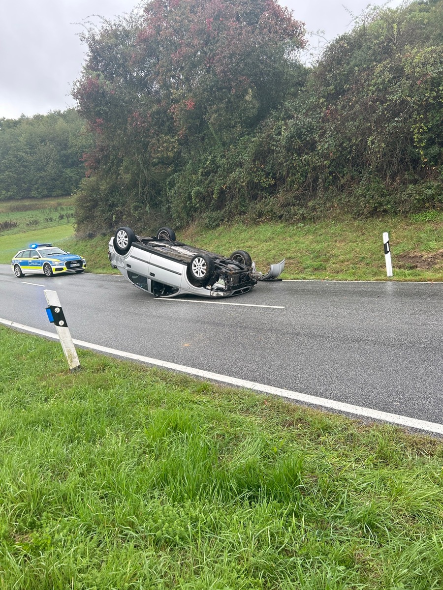 Am Samstagmorgen kam es zu einem Verkehrsunfall auf der L386 von Dörrmoschel kommend in Fahrtrichtung Dörnbach. Der 22-jährige Fahrer aus dem Donnersbergkreis verlor nach einem Wildwechsel die Kontrolle über sein Fahrzeug und überschlug sich. Das Fahrzeug blieb auf dem Dach liegen. Der Fahrer hatte Glück und blieb unverletzt. Am PKW entstand ein Totalschaden. Dieser musste durch einen Abschleppdienst geborgen werden. Da aus dem beschädigten PKW nach dem Unfall Betriebsstoffe austraten, wurde auch die Feuerwehr hinzugezogen. |hil