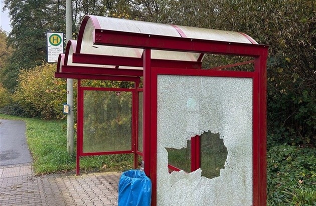 In der Nacht vom 31.10.2025 auf den 01.11.2025 beschädigte bisher unbekannter Täter vermutlich durch Einschlagen die gläserne Seitenscheibe der Bushaltestelle in Altenglan Ortsteil Patersbach. Der Gesamtschaden wird auf ca. 2000 Euro geschätzt. Sachdienliche Hinweise, die zur Ermittlung der oder des Verantwortlichen führen, bitte telefonisch unter 0631 - 369 14499 POLIZEI Kusel oder per E-Mail an piku-sel@polizei.rlp.de richten.|PI KUS WSD