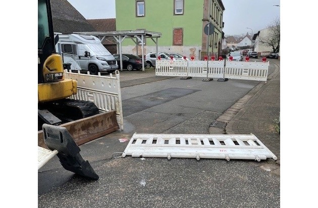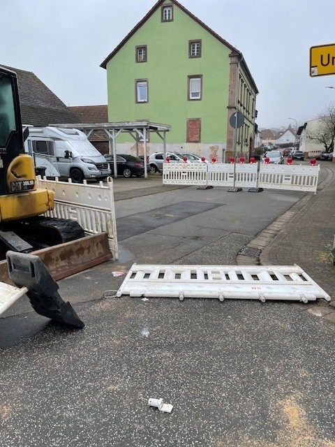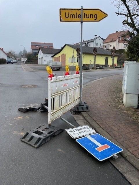Absperrmaterial einer Baustelle übersieht ein Verkehrsteilnehmer in der Samstag Nacht. In der Fürther Straße sind aktuell mehrere Elemente zwecks Absicherung einer Baustelle quer zur Fahrbahn platziert. Gegen 02.15 Uhr am frühen Sonntag Morgen, 08.02.2026 nahmen Zeugen Unfallgeräusche wahr. Nach Spurenlage ist davon aus-zugehen, dass ein allzu forscher Fahrzeuglenker heftig in das Hindernis brummte und das Absperrmaterial beschädigte. Der noch unbekannte Verursacher entfernte sich unerlaubt von der Unfallstelle, ohne sich um den angerichteten Schlamassel zu kümmern. Wer Hinweise zum Unfallgeschehen geben kann, wird gebeten sich bei der Polizeiwache Schönenberg-Kübelberg unter Tel.: 0631 - 369-14799 bzw. der Polizeiinspektion Kusel unter Tel.: 0631 369-14499 oder pikusel@polizei.rlp.de zu melden. |pikus