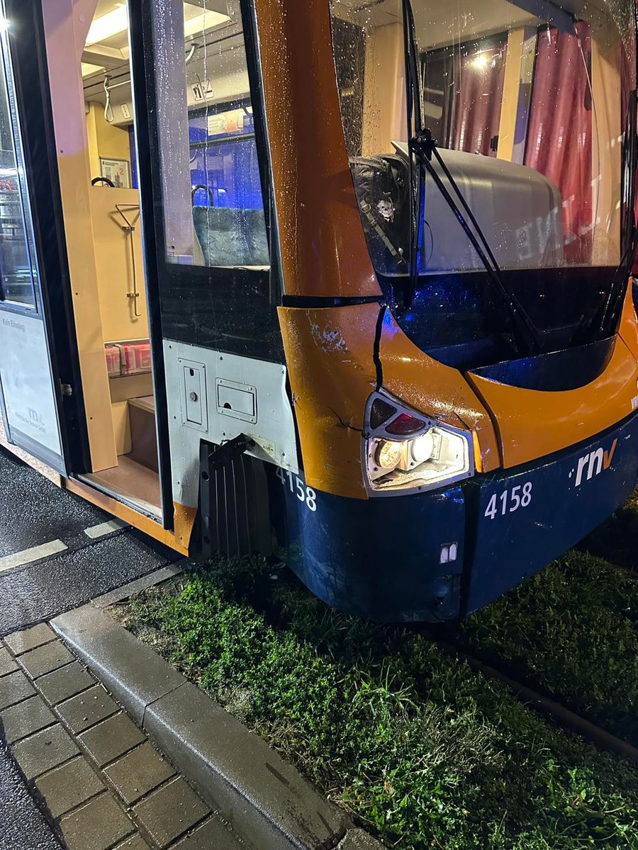 Gegen 20.15 Uhr prallte ein Fahrzeug aus bislang unbekannter Ursache im Bereich der Kreuzung Händelstraße mit einer Straßenbahn der OEG zusammen. Beim Eintreffen der Feuerwehr stand die Straßenbahn auf dem Gleis. Das Unfallfahrzeug war auf der Fahrerseite stark beschädigt. Eine Person befand sich im Fahrzeug, wurde durch den Rettungsdienst betreut und später ins Krankenhaus gebracht. Nach Angaben des Straßenbahnfahrers wurde in der Bahn niemand verletzt. Die Einsatzkräfte öffneten das Fahrzeug, um Zugang zur Motorhaube zu erhalten, und trennten die Batterie. Anschließend wurde das Auto gemeinsam mit der Polizei auf einen Parkplatz geschoben und die Fahrbahn von Fahrzeugteilen befreit. Die Feuerwehr übergab den Fahrzeugschlüssel an die Polizei. Für die Dauer des Einsatzes war die Mannheimer Straße teilweise gesperrt. Im Einsatz waren drei Fahrzeuge der Feuerwehr Weinheim mit 12 Einsatzkräften, der Rettungsdienst, die Polizei sowie Mitarbeiter der RNV. Der Einsatz war nach rund einer Stunde beendet.