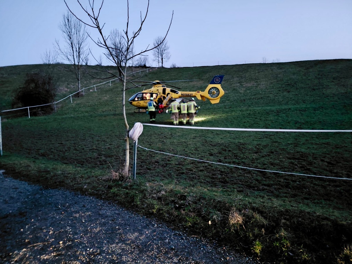 Nach der Übergabe am Rettungshubschrauber erfolgte der Flug in eine Klinik. Im Bereitsstellungsraum waren neben dem Rüstwagen mit technischen Rettungsgerät auch ein Löschfahrzeug in Stellung gegangen. Hier hatte die Feuerwehr weiteres Geräte und Material vorgehalten, um alle Möglichkeiten bereitszustellen und die Rettung bestmöglich durchzuführen.