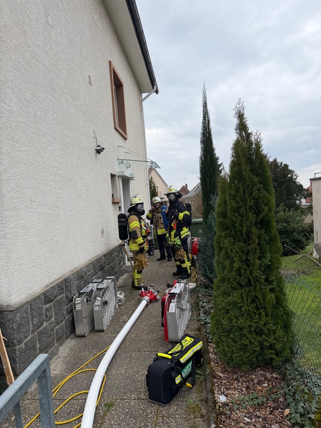 Beim Eintreffen der Einsatzkräfte war die betroffene Wohnung bereits stark verraucht. Ein Trupp unter Atemschutz ging zur Kontrolle und zu Nachlöscharbeiten in das Gebäude vor. Parallel wurde eine Schlauchleitung zur Sicherstellung der Löschwasserversorgung aufgebaut und ein Sicherheitstrupp in Bereitstellung gebracht.