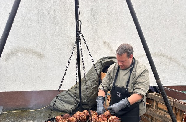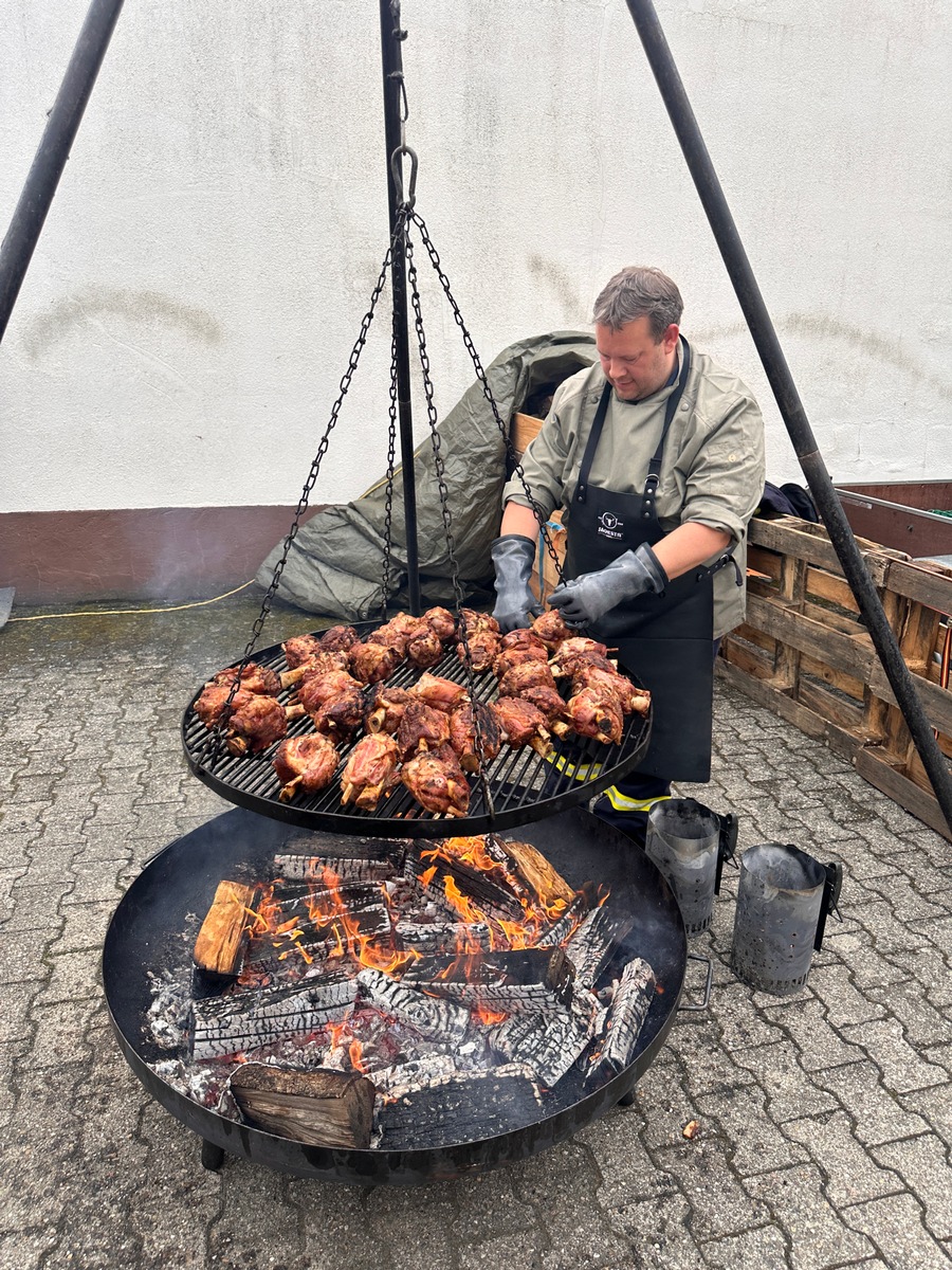 Großen Zuspruch fand das Café Florian. Der selbst gebackene Kuchen wurde durchweg gelobt. Für die herzhafte Versorgung sorgten unter anderem die Grillmeister. Sie bereiteten über der Feuerschale knusprige Haxen zu und zeigten damit, dass Feuer nicht nur bekämpft, sondern auch sinnvoll eingesetzt wird.