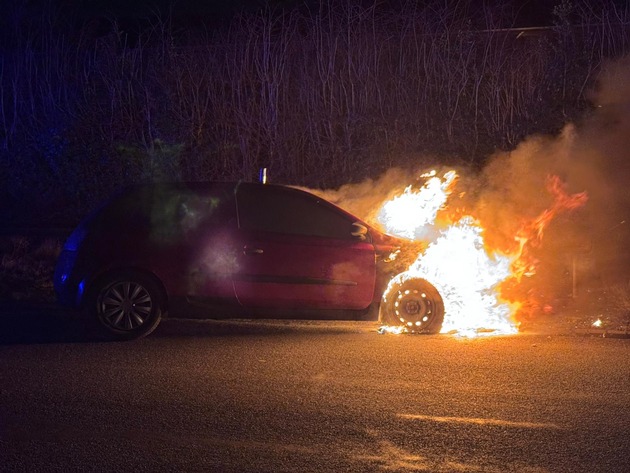 In der Nacht zu Montag wurde die Ortsfeuerwehr Bergen um 02:20 Uhr zu einem brennenden PKW alarmiert. Vor Ort stand ein PKW im Motorraum in Vollbrand. Das Fahrzeuge wurde unter Atemschutz mit einem C-Rohr abgelöscht.