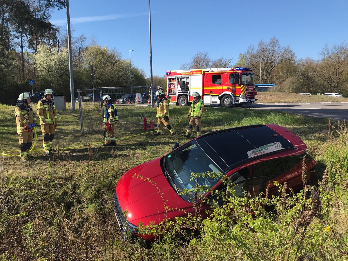 Die Feuerwehr war mit 20 Einsatzkräften und 5 Fahrzeugen rund 45 Minuten im Einsatz. Die Unfallursache ist Gegenstand polizeilicher Ermittlungen. Das Fahrzeug wird aktuell noch geborgen.