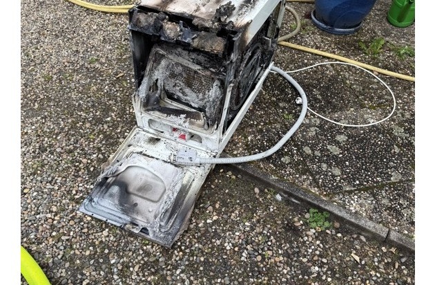 Im Keller eines Wohngebäudes hatte sich eine Waschmaschine entzündet, wodurch der gesamte Kellerbereich stark verraucht wurde. Der Angriffstrupp konnte unter Atemschutz zügig zur Brandbekämpfung vorgehen und das Feuer schnell unter Kontrolle bringen. Die betroffene Waschmaschine wurde anschließend ins Freie verbracht.