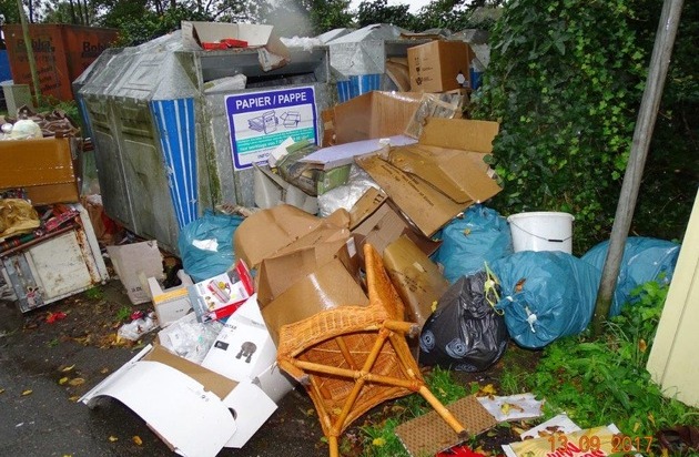 Unbekannte luden insbesondere einen Kühlschrank, zwei Kunststoffeimer mit Farbresten, diverse Kunststoffsäcke mit Hausmüll, eine große Menge an Pappe und Verpackungsmaterial sowie jede Menge Elektroschrott auf einem dortigen Containerstellplatz ab und entfernten sich anschließend.