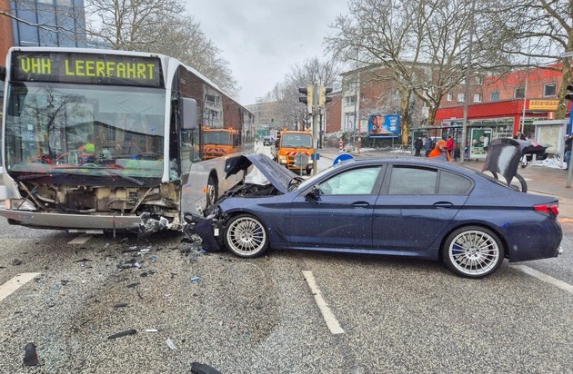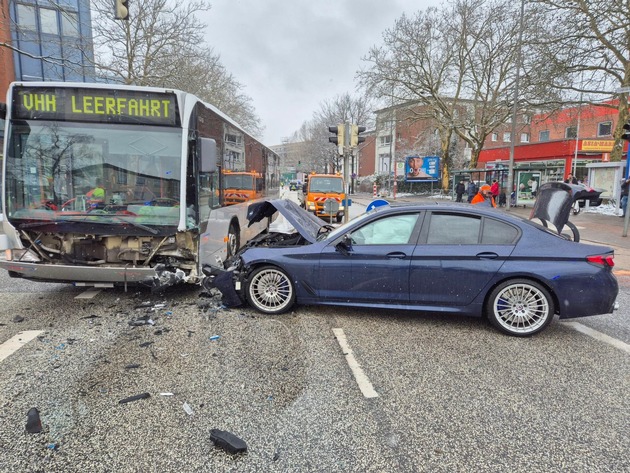 Die 61-jährige Busfahrerin und drei Fahrgäste wurden bei dem Verkehrsunfall leicht verletzt. Der BMW-Fahrer und zwei Mitfahrer verletzten sich ebenfalls leicht. Alle Verletzten mussten vorsorglich in Krankenhäuser verbracht werden.