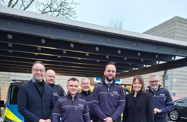 Landrätin Ina Laukötter begrüßte beide Bezirksdienstbeamte gemeinsam mit Bürgermeister Theo Mettenborg, Polizeidirektor Dirk Zeller und den direkten Vorgesetzten Erster Polizeihauptkommissar Oliver Ney und Polizeihauptkommissar Andreas Möllenhoff persönlich. Sie betonte, wie wichtig es für die Menschen in den Städten und Gemeinden ist, direkte Ansprechpartner zu haben.