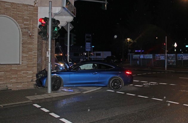 Ein 28-jähriger Autofahrer verursachte am Samstagabend (29.11.2025) einen Verkehrsunfall, indem er mutmaßlich aufgrund von überhöhter Geschwindigkeit die Kontrolle über seinen Wagen verlor und gegen eine Hauswand prallte.
