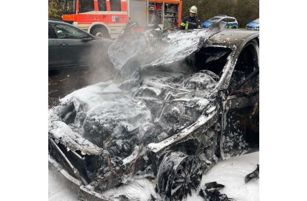 Die hinzugezogene Feuerwehr konnte gerade noch verhindern, dass das Feuer auf einen weiteren PKW übergriff. Der betroffene Mercedes brannte allerdings komplett aus. Der entstandene Sachschaden wird auf rund 30000 Euro geschätzt.