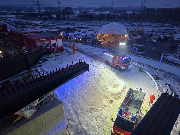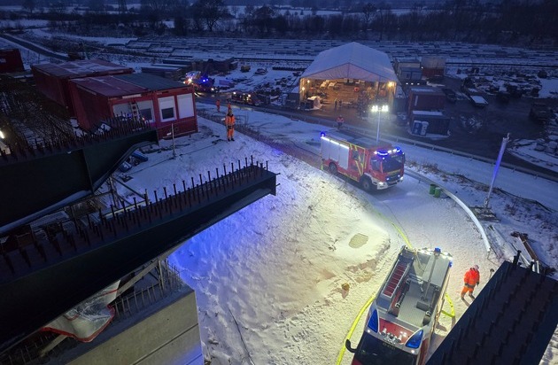 Am Dienstagmittag um 13:23 Uhr wurden die Feuerwehren Borgstedt, Bünsdorf und Büdelsdorf zu einer brennenden Acetylenflasche auf dem Ersatzbauwerk der Rader Hochbrücke alarmiert.