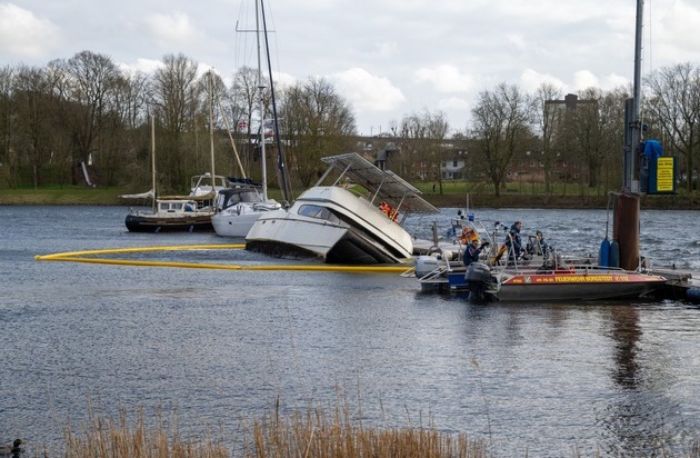 In enger Abstimmung aller beteiligten Führungskräfte wurde ein gemeinsames Vorgehen festgelegt. Der Katamaran wurde durch Taucher zusätzlich mit Leinen gesichert. Eine weitere Ölsperre wurde auf der gegenüberliegenden Seite des Steges ausgebracht, sodass eine Gefährdung der Umwelt ausgeschlossen werden konnte. Der Eigner ist nun aufgefordert, ein Fachunternehmen mit der Bergung des Katamarans zu beauftragen.