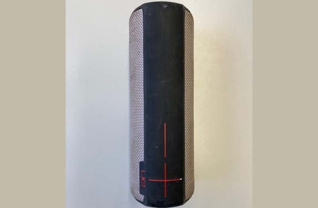 Im Rahmen einer Ermittlung haben Polizeibeamte bei einem Tatverdächtigen einen UE Boom 2 Lautsprecher gefunden, bei dem es sich vermutlich um Diebesgut handelt. Der Lautsprecher wurde sichergestellt.