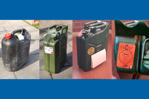 Bei den weiteren Ermittlungen stellten die Beamten drei Kanister sicher, die vermutlich aus Diebstählen stammen. Die Polizei konnte die Kanister bislang nicht den Eigentümern zuordnen und sucht sie jetzt.
