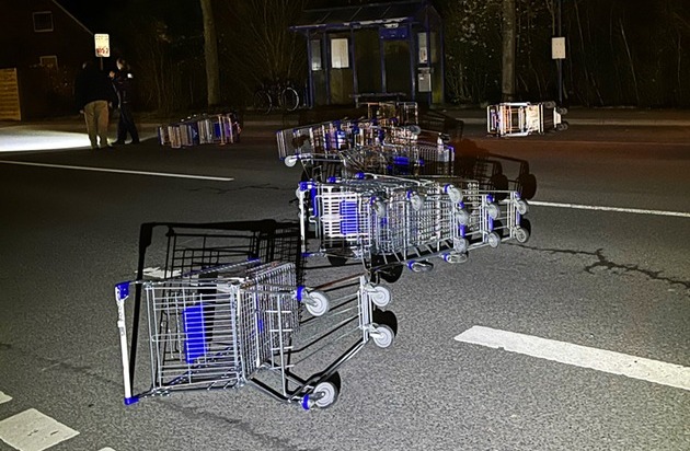 Ein 48-jähriger Mann aus Coesfeld fuhr gegen 01.30 Uhr mit einem Nissan Qashqai auf der Koppelstraße in Richtung Kreisverkehr Fürstenwiese/Eichendorffstraße. In Höhe der Einmündung Warnsveldallee erkannte er zu spät, dass mehrere Einkaufswagen auf der Straße lagen. Sein Auto kollidierte mit diesen. Nach ersten Erkenntnissen waren die Einkaufswagen von Unbekannten von zwei Supermärkten, die sich in der Warnsveldallee befinden, geholt und dann auf die Straße gelegt worden. Der Autofahrer blieb unverletzt. Der Schaden am Fahrzeug liegt nach ersten Schätzungen bei 3.000 Euro.